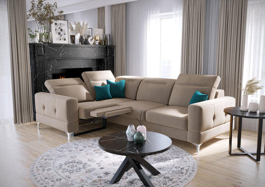 TOSCANA RELAX - Corner Sofa Relax with Sleeping Function, Various Colours, Left or Right , 2 Colour Legs >250 x 185cm<
