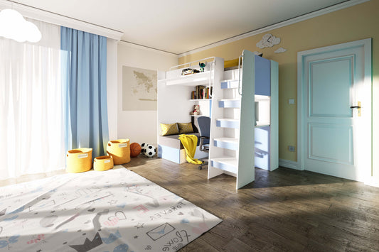 JESSICA 7 - Loft Bed with Desk and Sofa, 9 Colour Inserts