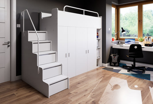 JESSICA 2B - Cabin Bed with Stairs and 2 Wardrobes, High Gloss Inserts