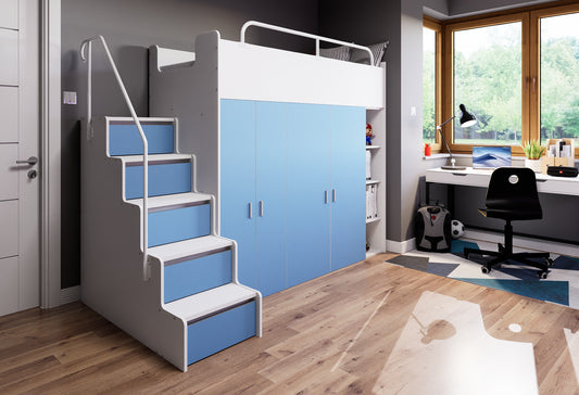 JESSICA 2 - Cabin Bed with Stairs and 2 Wardrobes, 8 Matt Colours Inserts