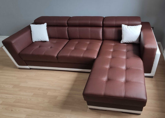 BARI 1 - Modern Corner Sofa Brown & White Right Faux Leather Adjustable Headrest Fast Delivery >272x172cm<
