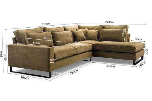 CORRIE METAL - Corner Sofa, Right, Cushions, Elegant Wish Fabric, FAST DELIVERY >314 x 224cm<