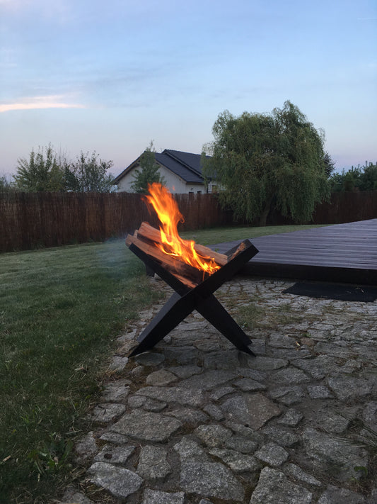 X-FIRE Modern Unico Fireplace Pit Garden Hearth Black Raw Corten Steel Outdoor 60cm