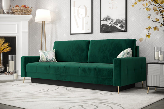 ARES - Sofa Bed with Storage in Bottle Green, Very Comfortable - FAST DELIVERY >214 cmx104cm<