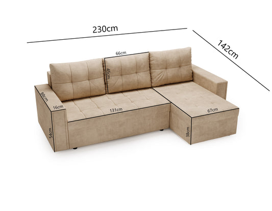 ALEXANDRA - Corner Sofa Bed with Sleeping Function > 230cm <